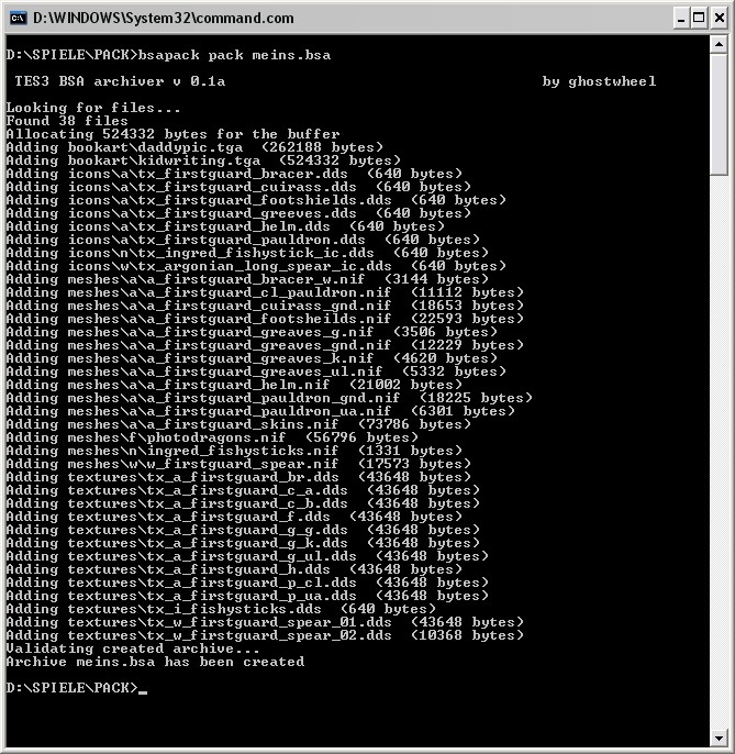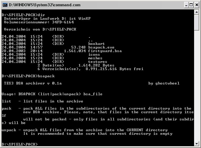 Verwendung: Zum Betrachten, Entpacken, Packen und Registrieren der .bsa-Archive in der Morrowind.ini-Datei