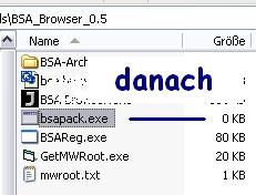 Hier begannen meine Probleme. Ich habe es nicht geschafft, mit dem BSA-Browser ein BSA-Archiv zu erzeugen.