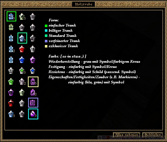 entsprechend der Wirkung versieht. Nicht gleichzeitig mit Potions und/oder Scrolls verwenden! |