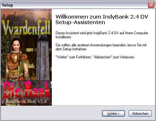 Das ist die Version die von mir, aufgrund der St*rgate-Kombatibilität, für die DV ggf. weiter entwickelt wird. Text zur Version 2.4 - September 2005 Im Gegensatz zur Vorgängerversion 2.2 habe ich mir nicht mehr die Mühe gemacht die Originalversion zu übersetzen. Die vorliegende Bankversion enthält diverse Landschaftsanpassungen. In Balmora und Dagon Fel an das Stargate Plugin (PMM-Mod), das ich nicht mehr missen möchte, denn es gibt diese geheimnisvolle Atmosphäre :) - in Balmora weiterhin an das Haus des Kaisers (NewRaven) und an Home Sweet Home (PMM-Mod, Eingang unter der Brücke). Dafür dürfte die vorliegende Version nach meinem Erkenntnisstand die einzige sein, in der die Fehler (mir bekannt ab 2.2) der EV - verschieden Häuser in der Nähe von dem PI zugehörigen Gebäuden konnten nicht mehr betreten werden - beseitigt sind. Na gut, nicht nur da . In der 2.2 DV hatte ich das auch schon entfernt. Die Banken sind nachts geschlossen und ein Eindringen wird als Vergehen bis hin zum Verbrechen betrachtet. In verschiedenen Cells habe ich noch kleine Korrekturen oder Änderungen, meist kosmetischer Art, vorgenommen. Die Version ohne Häuser (Immobilien) habe ich nicht übersetzt. Aufgrund der Änderungen wird das Original nicht benötigt, der dort enthaltenen 'Gold-Replacer' ist im GoldRepPack auf meiner Seite auch enthalten, wer ihn also braucht… Die zusätzliche goldweight.esp kann benutzt werden, damit sich die Funktion Kreditbrief (s.o. - eigentlich ein Wertpapier) ein wenig lohnt. Mit dem Papier kann man dann bei großen Summen Geld sparen. Außerdem nehmen nun auch viele Händler den Kreditbrief in Zahlung. Teleportscripte in der ein-klick-ins-Magiemenü Version ;)